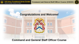 This video is a welcome and brief overview of the Command and General Staff Officer’s Course.